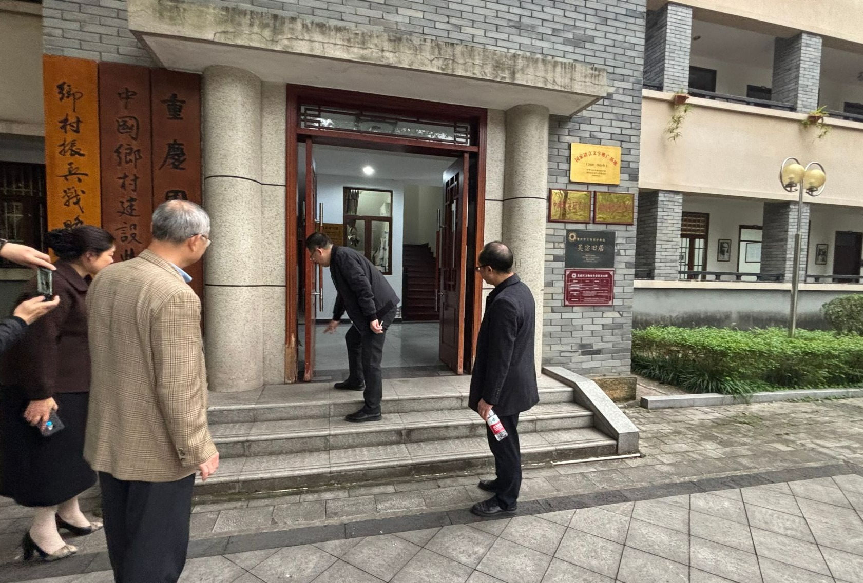 调研现场,肖亚成执行院长首先向黄昌建处长一行介绍我院近年来在乡村人才培养、产业振兴研究、乡村治理创新等领域的科研成果与发展规划,提及我院科研团队常年扎根基层、服务“三农”的工作特性,以及作孚楼作为对外交流窗口、接待来访专家学者的重要功能。随后,在对我院办公场地勘察过程中,同行人员发现作孚楼大门边角已严重破损、木材开裂脱落,既影响楼宇对外形象,更存在刮擦人员衣物与皮肤的安全隐患,给日常办公带来困扰。