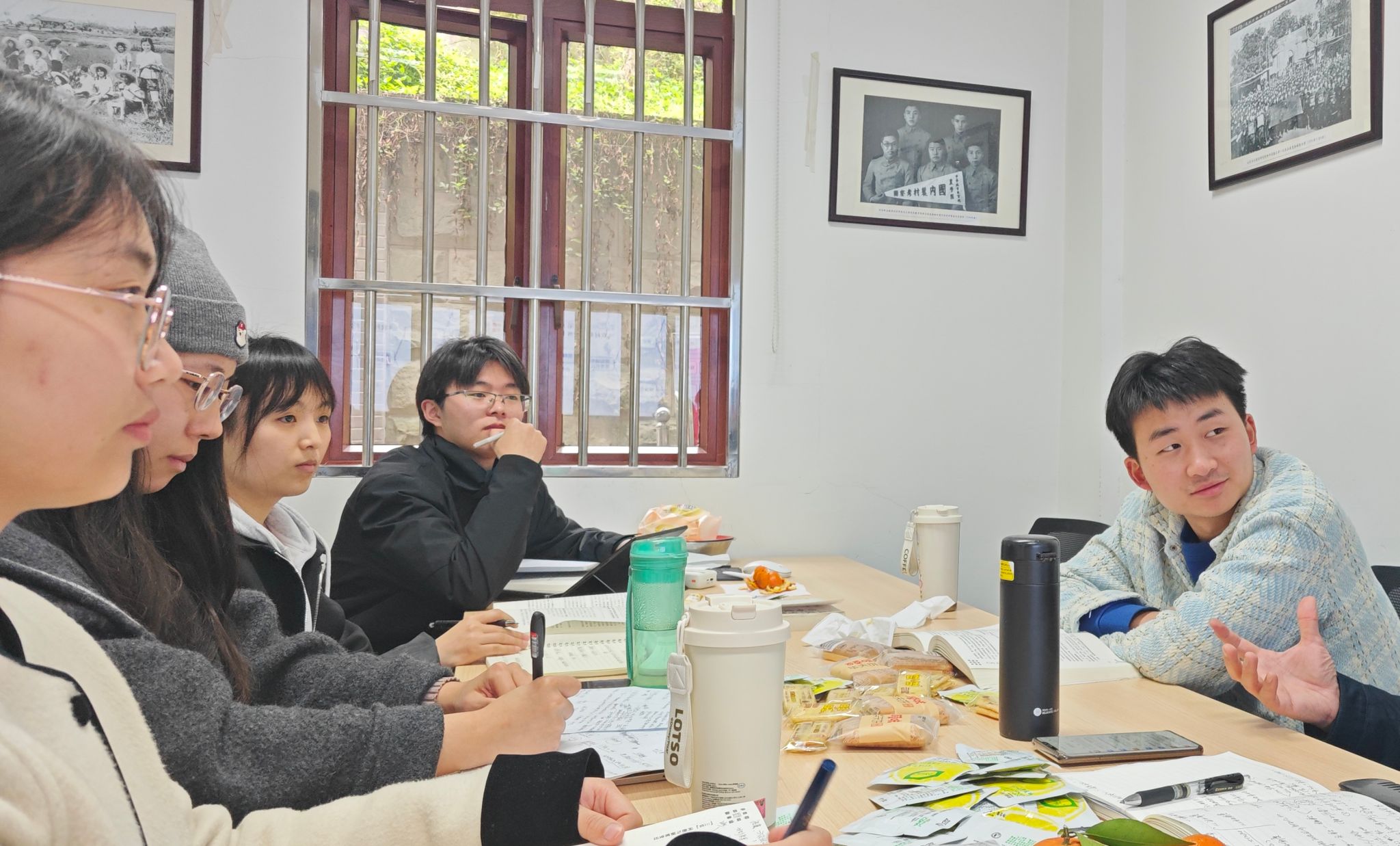 成员交流环节,潘家恩教授结合外部环境与工业化间的关系提出“应深入思考史实底层逻辑”的观点;并抛出“造船、租船、买船”以及“大小仁政”的主题讨论。针对“造船、租船、买船”话题,刘懋兴、马里奥、曾楚和蒙宇虹同学分享了汽车租卖、婚纱租赁、厂内借工等经验案例说明租与买在当下流行的原因及其所面临的困境;陈林依同学基于分工交换理论的前提,指出各行业各环节不断细化分工专业化生产的倾向以及由此带来的经济主体选择由造到租的趋势;张斌老师提出应将大国博弈的复杂现况纳入租与买的权衡之中。对于“大小仁政”话题,李行同学阐述了梁漱溟对于大小仁政的思想内容,并认为大小仁政并非对立之态;姚博同学结合盐铁论说明大小仁政的选择与国家所处外部环境间的关系,并提出真假仁政的概念;李劲佚同学进一步阐述两种仁政间的动态演变态势。