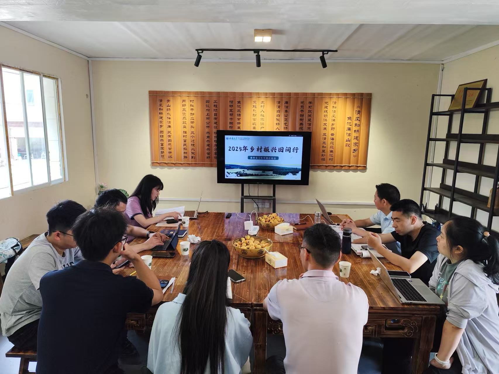 2025年5月20日,我院在巴南区鱼池村实践基地召开“2025年乡村振兴田间行春季实习生中期总结会”,总结阶段成果并部署下阶段工作。实习生代表、接收单位负责人及指导老师等10余人参会。