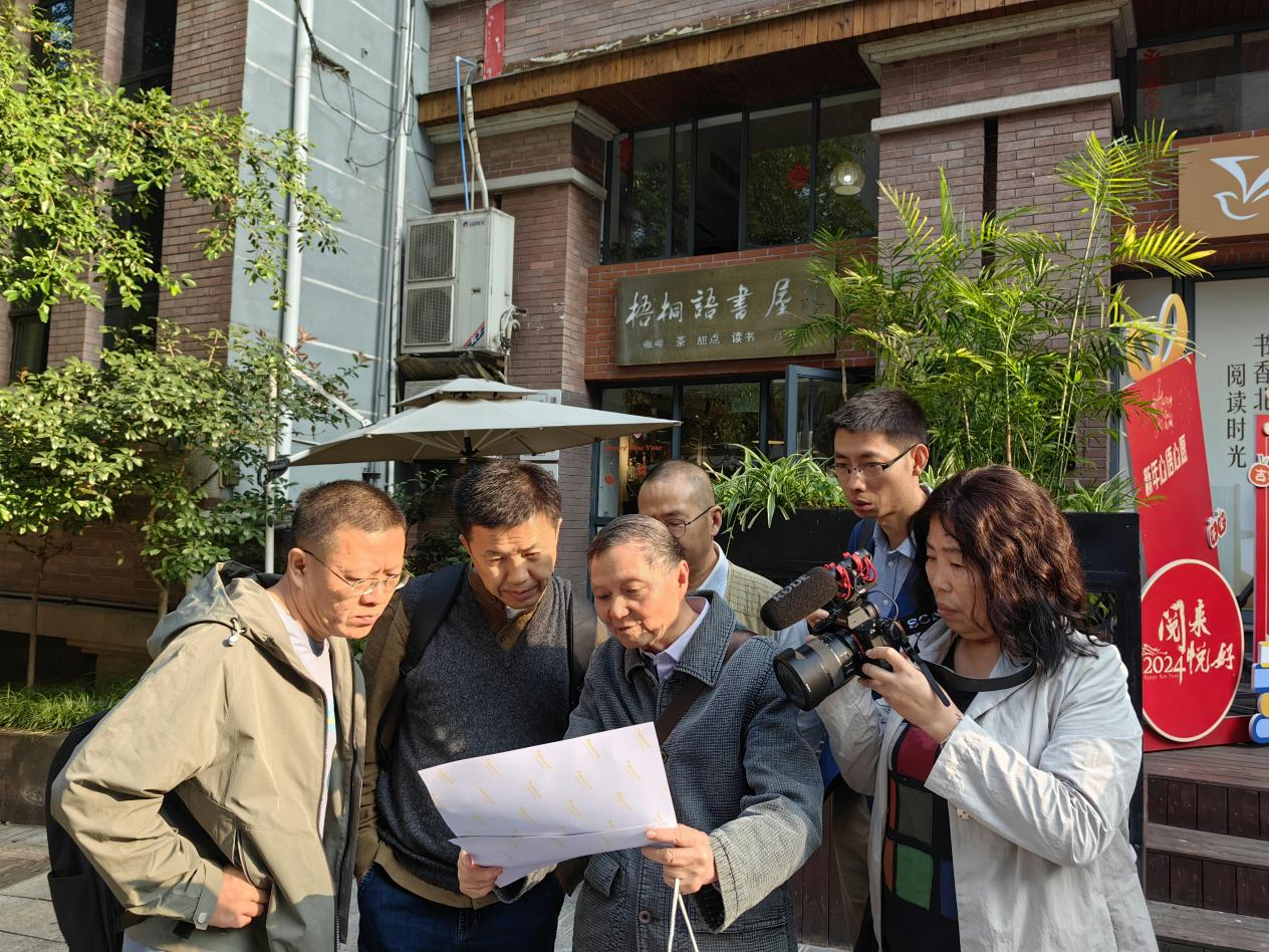 《北碚乡建记忆》作者高代华根据历史老照片在街头现场介绍北碚乡建旧址分布