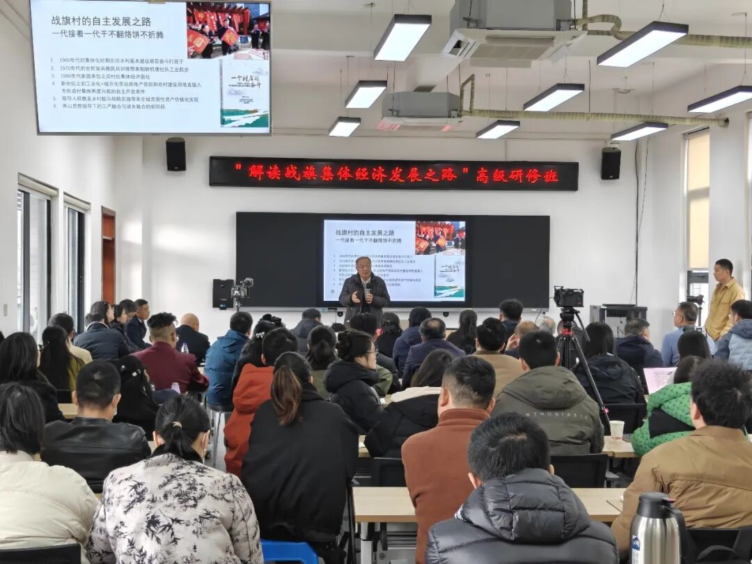 本次研修班以“理论深度+实践鲜活”为核心特色。著名三农学者温铁军教授亲临现场,带来题为《中国式现代化与乡村振兴新格局》的专题讲座。温铁军教授以其宏阔的视野与深厚的学理,深刻阐释了中国式现代化背景下乡村振兴的战略意义和主要经验,并以战旗村的发展之路为样本,解析集体经济在整合资源、激活主体、实现共同富裕中的核心逻辑,为学员们夯实了理论根基。他指出,战旗村探索的“党组织领导下的集体经济机制”、“集体资产保值增值路径”与“农民主体激活模式”,有效实现了集体经济的发展和村庄振兴。