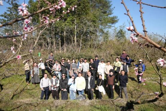 沿路会经过很多景致,最开始的一个停留点是新村民大海的桃花林。这个时节,桃树上刚开始结花骨朵,零星的花朵在阳光下绽放出淡粉。大海给大家分享他如何来到村里,酿造黄酒,养护桃树。